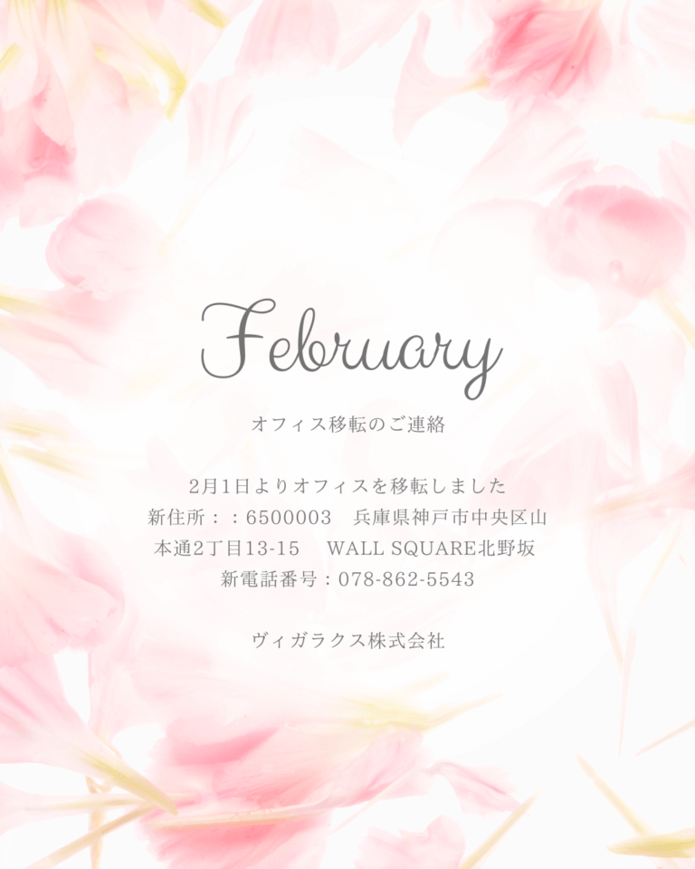 ヴィガラクス本社オフィスを移転いたしました。 新オフィスは神戸市北野に位置する素敵なビルです。 どうぞお近くにお越しの際にはお立ち寄りくださいませ。 新住所:650-0003 兵庫県神戸市中央区山本通2丁目13-15 W […] -